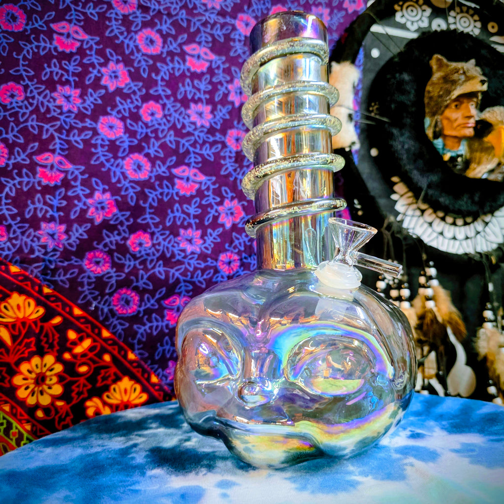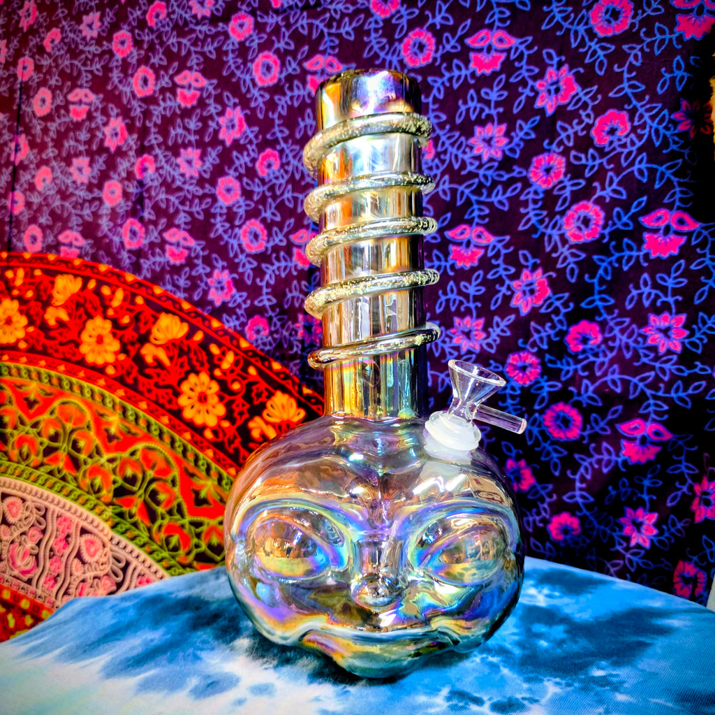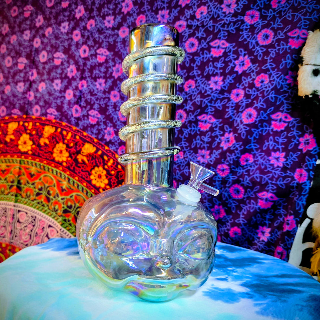 11.5" Soft Glass Alien Waterpipe-Glass on Glass-Iridescent Gray-Glow In The Dark-SG11A