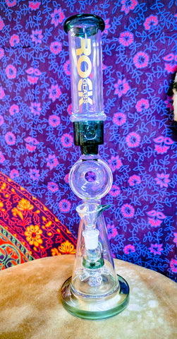 14” Glass Dual Perc Waterpipe RS214 Teal Accents