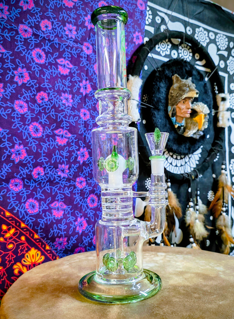 14” Rock Glass Waterpipe RS487 w/ Ice Catch & Green Accents