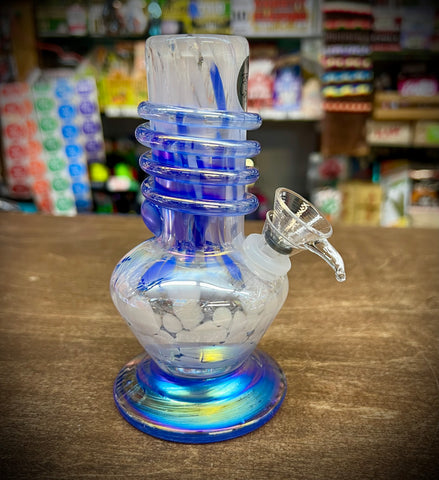 Color: White with iridescent blue wrap and base.