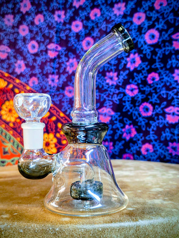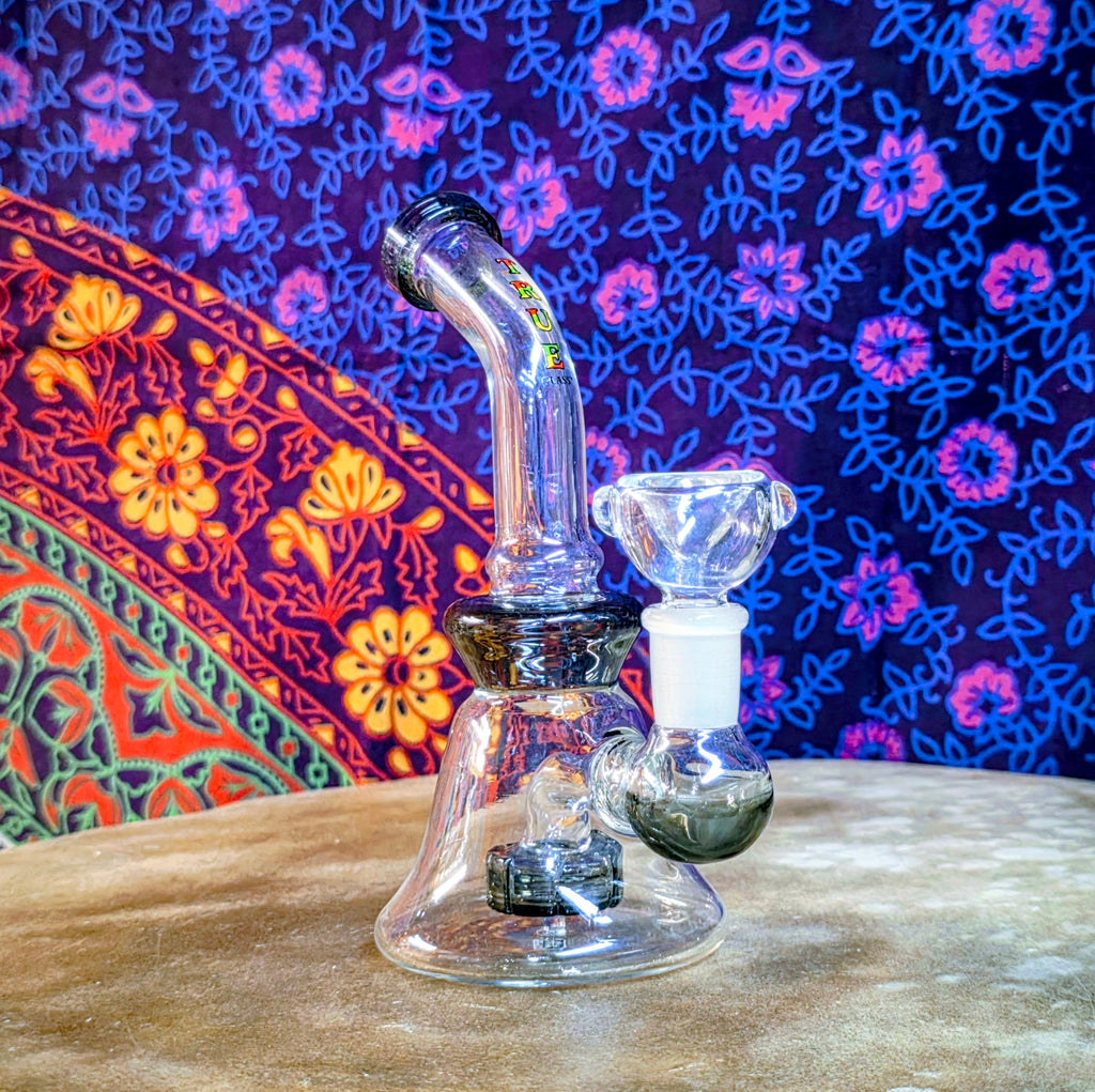 6” True Glass Single Perc Bent Neck Waterpipe-Gray Accents-GWP182