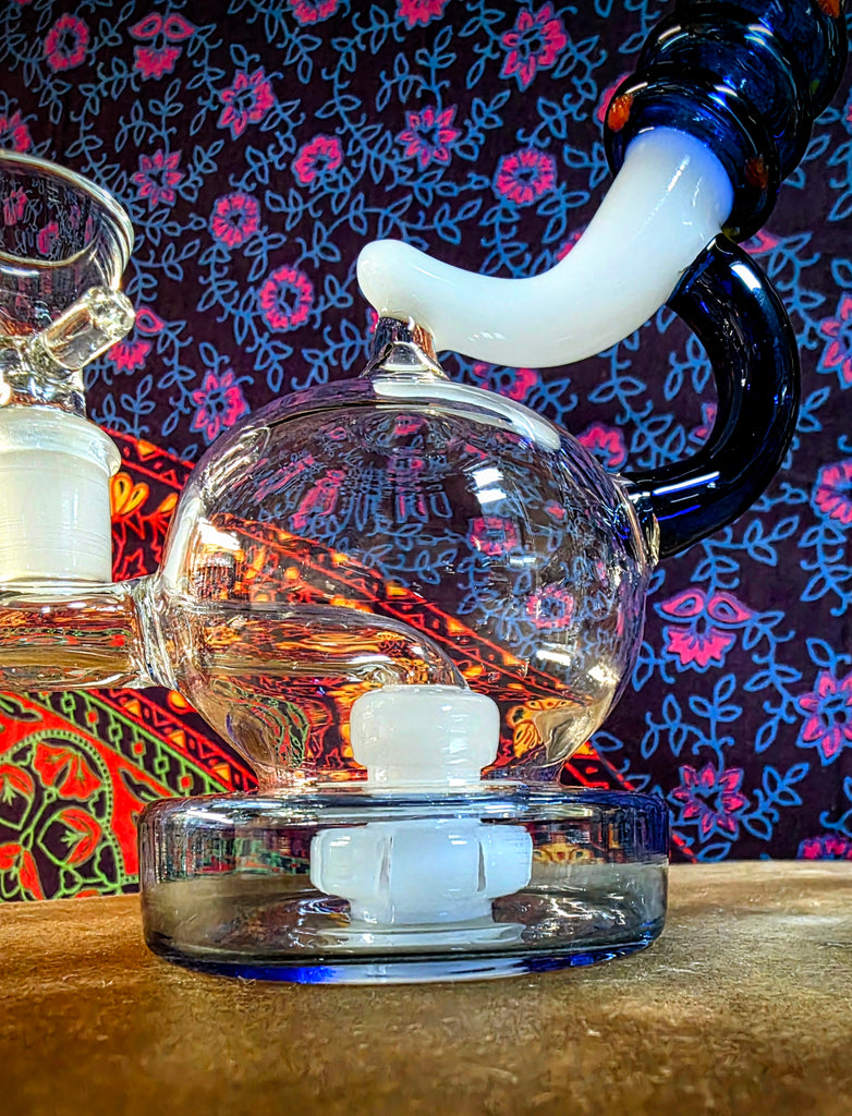7” Globe Recycler Waterpipe w/Blue & White Accents-MK104