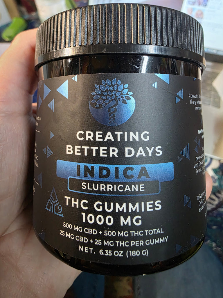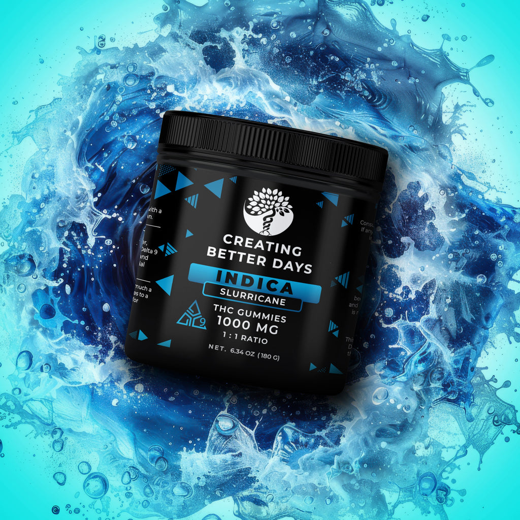 Creating Better Days' Slurricane (Indica) THC + CBD Gummies – 1000mg Total Cannabinoids.