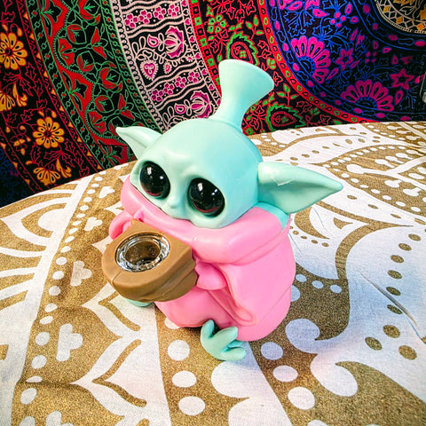 - Standing at just 12 cm (4.5 inches) tall, this Baby Yoda water pipe is lightweight and compact, making it a great travel companion. It easily fits into your backpack, letting you take it wherever your adventures lead.