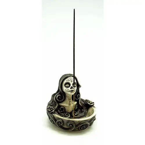 Big Day of the Dead Incense Holder/Ashtray. Also great for holding change or jewelry. 5 x 5 x 4.5 inches. Hand Painted Cold Cast Resin