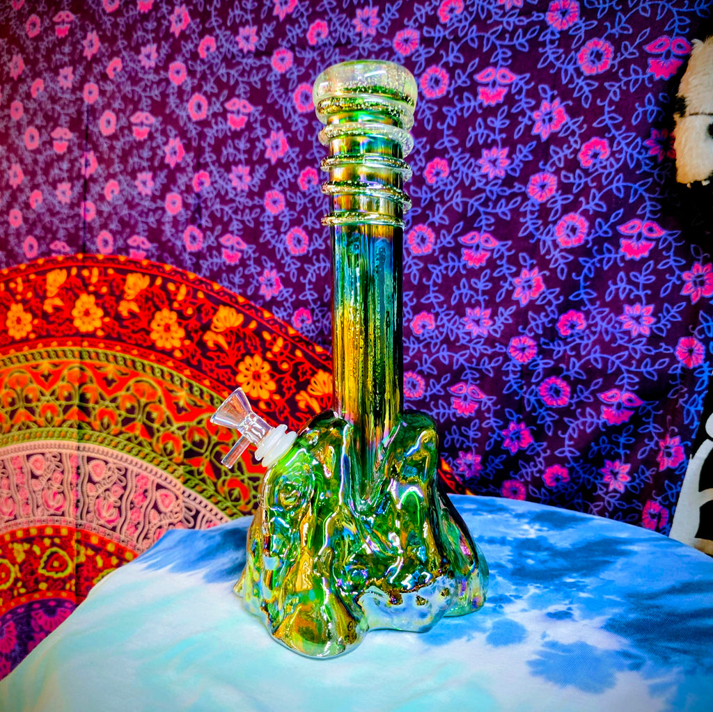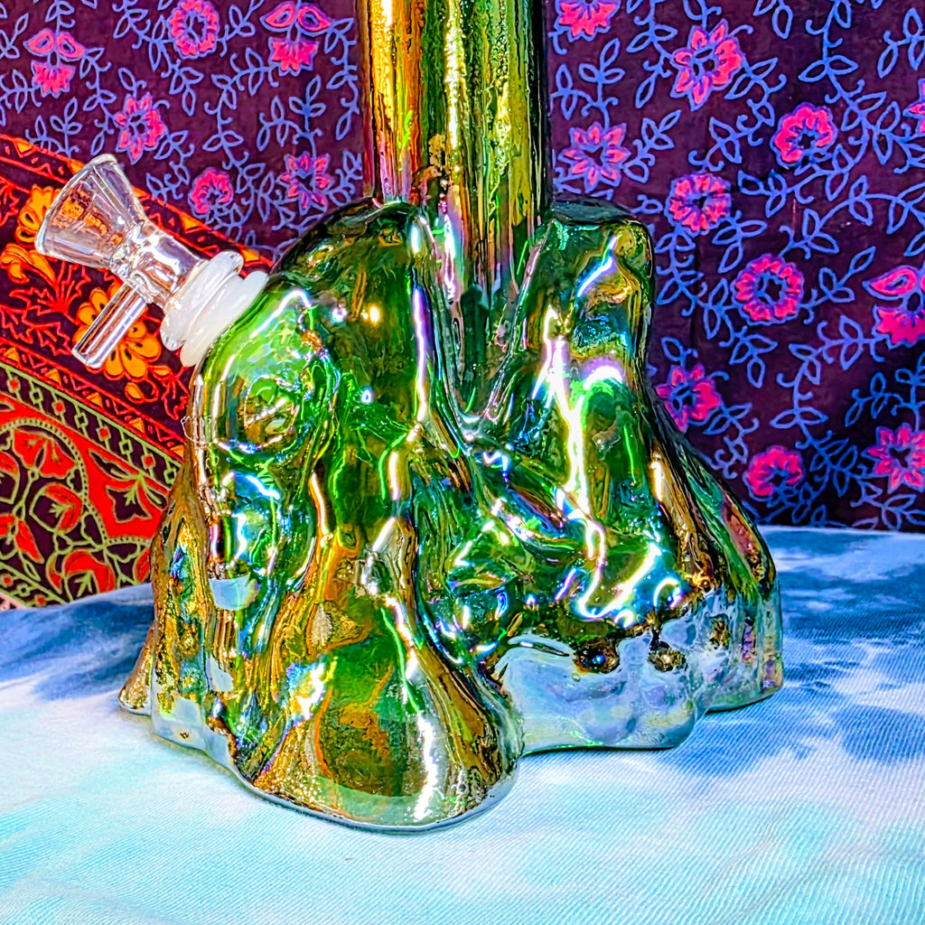 11" Soft Glass Eagle Waterpipe-Glass on Glass-Iridescent Bright Green-Glow In The Dark-SG11A