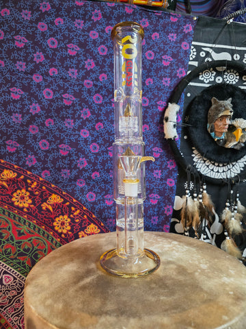 16” Rock Glass Clear Triple Perc Waterpipe w/ Ice Catch & Amber Accents-RS431