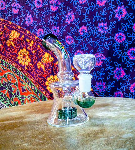 6" Rock Glass Bent Neck Hourglass Shape Waterpipe-Teal Accents-GWP322