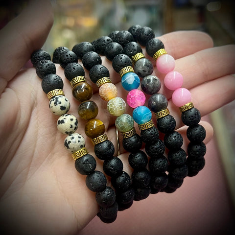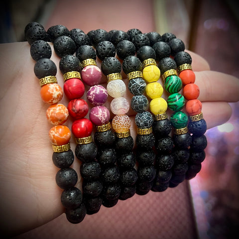 Mix of crystal and glass beads. Not authentic lava stone beads.